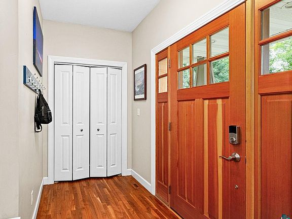 Fall in LOVE with this Hermantown STUNNER! Welcome to this stunning contemporary home in Hermantown with BRAND NEW hardwood floors! As you enter, you are greeted by warm hardwood floors and large, bright windows that flood the space with natural light. To the left, an office with French doors provides the perfect designated workspace without sacrificing a bedroom! The inviting living room features a cozy gas fireplace and tasteful built-ins, an ideal spot for relaxing after a long day! The open-concept layout seamlessly connects the living room to the dining area and kitchen - ideal for those who love hosting or just to stay connected with their down-time! The dining room offers access to a spacious back deck through double doors, perfect for indoor and outdoor entertaining and looking out at over an acre of yard! For the cuisine connoisseur this kitchen is a dream! Boasting granite countertops, stainless steel appliances, a gas range, and a large kitchen island! With plenty of storage space, including a pantry, you'll never run out of room for your culinary needs! A convenient mudroom off the insulated, attached 3-stall garage (with oversized doors!) provides easy access to the home and ample storage, while a breezeway leads to the hot tub/sauna area, perfect for unwinding! A powder room on the main level adds to the convenience of this home for occupants and guests alike! Upstairs, you'll find four generously sized bedrooms all with large closets! The laundry room is also located on the second floor, making this task easy! A bright and modern full bathroom can also be found here! The primary bedroom is spacious and features a walk-in closet and a beautiful full en suite bathroom! The lower level offers even more living space! A bonus family room space, complete with beautiful stone fireplace, a 3/4 bathroom featuring a walk-in tile shower, and a fifth bedroom! With its big, bright windows, this space doesn't feel like a typical lower level! Outside, the home features beautiful views of the wooded lot from the expansive back deck! Abundant yard space, complete with raised gardens await you here! Located on a quiet street with cul-de-sac, but in close proximity to schools (walking distance!), dining, shopping, and other amenities! Don't miss out on this beautiful home—schedule a showing today! This home has been pre-inspected for your convenience!