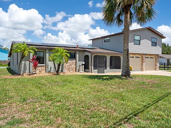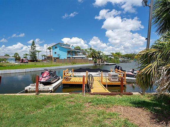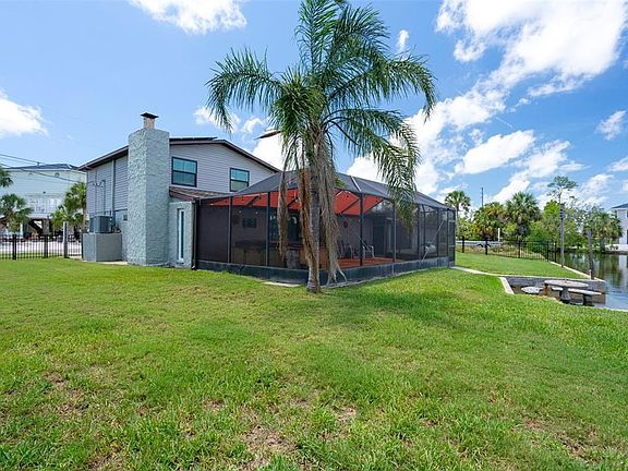 Welcome to Your Waterfront Oasis in Hernando Beach! This beautifully maintained 4-bedroom, 3-bathroom home with a 2-car garage sits on an expansive double lot with deepwater canal frontage on two sides—offering direct Gulf access, panoramic water views, and daily encounters with Florida wildlife right in your backyard. Nestled in a peaceful neighborhood, a screened front porch sets the tone for casual coastal living and leads you into the spacious kitchen - the true heart of the home. Recently updated in 2024 with new appliances, the kitchen features a massive granite top island with wraparound seating and a mounted TV, creating the perfect space for family gatherings, entertaining, and holiday celebrations. To the left of the kitchen, you'll find a full bath and the spacious primary suite, complete with vaulted, beamed ceilings, wood look tile flooring, a large walk-in closet, and a remodeled en suite bathroom featuring a unique step-in tiled shower with a luxurious rain showerhead. On the opposite side, a large dining and family room features slate flooring, a brand-new electric fireplace and sliding doors that open to the screened lanai. This wing of the home also includes a bonus room that could be a 4th bedroom, garage access, and stairs leading to the second floor, where you'll find two additional well-sized bedrooms and a third full bathroom. The outdoor living space is where this home truly shines. The oversized screened lanai includes a relaxing hot tub and a dedicated grilling area just off the kitchen. The fully fenced yard is pet-friendly, with plenty of room to add a pool if desired. Enjoy multiple outdoor seating areas, a floating dock for your boat or water toys, and stunning open water views from your corner canal location—all just minutes from the Gulf with only a couple of easy turns. Lovingly cared for and thoughtfully updated, this home offers peace of mind along with luxury. Key updates include: Roof: 2009 Solar Panels: 2019 Water Heater: 2024 Refrigerator & Range: 2024 Dishwasher & Washer: 2020 Dock: 2009 Water Conditioner 2021 Don't miss this opportunity to own your slice of waterfront paradise in Hernando Beach—schedule your private showing today!