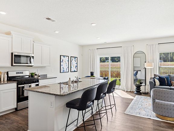Welcome to the Hayden floorplan at Millstone Village in Morristown. This amazing home features 5 bedrooms and 3 bathrooms optimizing living space with an open concept design. The eat-in kitchen overlooks the living area, while having a view to the outdoor patio. The kitchen features an island with bar seating and plentiful cabinets and counter space. The first floor also features a flex room that could be used as a formal dining room or office, as well as a bedroom and full bathroom. As you head up to the second floor, you are greeted with the primary bedroom that features an ensuite bathroom as well as three additional bedrooms that surround a second living area, a full bathroom, and a laundry area. The Hayden plan is a stunning home that utilizes space. Make it your next home by scheduling an appointment with a New Home Specialist today.