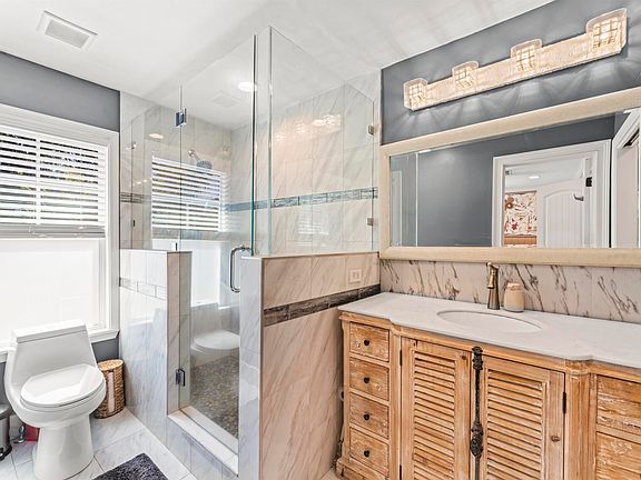 This beautifully maintained home is ready for its new owners.Thoughtfully remodeled, it features elegant flooring, custom wall accents, designer tiled showers, furniture-style vanities, & upgraded lighting. The kitchen is designed to impress with like new gray cabinetry, solid countertops, & French doors that open to an oversized deck and a fabulous covered pavilion. The backyard is perfectly appointed for gatherings, offering a lighted pavilion for grilling and relaxing, along with an outdoor half bath for your guests to use when they are catching all the game day activities. A storage building in the yard holds all your extras, along w/1 car garage. 2 bedrooms & 2 baths on main and additional bedroom, den, office space and full bath downstairs. New HVAC system-May 2025, provides added efficiency and peace of mind. Roof 2020 Nestled in a quiet neighborhood, minutes from shopping, dining, & interstate access. This home combines style, comfort & location in one exceptional property.