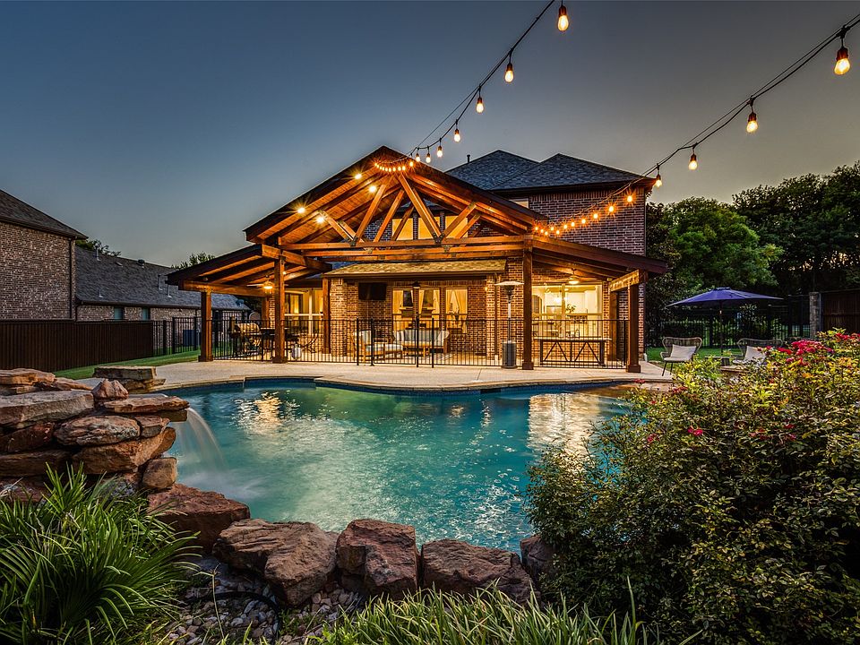 - Pool features: Fenced, Gunite, Heated, In Ground, Pool, Private, Pool Sweep, Pool/Spa Combo, Waterfall, Water Feature