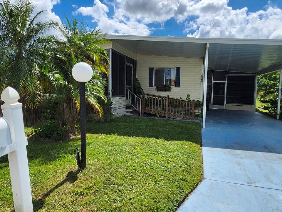 Motivated Seller! This home MUST SELL QUICKLY - ALL OFFERS WELCOME! Located in the heart of beautiful Bradenton, Florida, this charming home sits on the perimeter of the highly desirable and gated 55+ community of Windmill Manor. Coastal living is at your fingertips for an affordable price. Step inside this quaint abode FEATURING everything you need to begin your leisure and Florida lifestyle: a functional kitchen with all essential appliances, a breakfast counter with easy chairs on rollers to enjoy morning coffee and pastries, ample cabinet and counter space, and a LARGE pantry for kitchen storage. In addition, beautiful, rich laminate flooring runs through the heart of this home for easy maintenance, while plush carpet fills the hallway and bedrooms for your comfort underfoot. The open concept dining/living area is perfect for relaxing or entertaining with a built-in coffee bar/hutch & cabinets. Step into the tranquil Florida Room, boasting plush carpet, an abundance of windows for natural light, and a portable A/C all for your comfort. A large hallway closet offers lots of storage, while the Master bedroom includes desirable features: a walk-in closet and an en suite with a large walk-in shower ideal for rejuvenating after a day at the beach. The spacious shed is attached and houses a washer and dryer for ease of daily chores, PLUS a handy workbench for all your tools. Store extra gear and more in this convenient space. On the exterior, a carport provides protection for your vehicles and a privacy hedge alongside. Walk around to the back for more privacy with no neighbors and lush views of green foliage and a wooded area. This Gulf Coast awaits your arrival. All you have to do is bring your own personal touch to make it your own! Make an offer. This home must sell PRONTO! Full-time home or seasonal getaway, this is your perfect opportunity! HOME IS LOCATED IN WINDMILL MANOR, JUST OFF OF SR70 AND NATALIE WAY IN BRADENTON. COMMUNITY IS 40+, CLOSE TO RESTAURANTS AND SHOPPING. LOT RENT IS $1131 PER MONTH AND INCLUDES WATER, SEWER, TRASH, YARD SERVICE, AND BASIC CABLE. CALL NOW TO SCHEDULE A SHOWING. NOT IN TOWN, NO WORRIES, WE CAN DO PAPERWORK REMOTELY. CALL NOW (RENTALS ARE ALLOWED). Amenities include an active clubhouse, heated swimming pool, library, rec room, billiards, and a dog park. TWO pets under 25 lbs. are allowed. A Very Nice park, centrally located to restaurants, shopping, airports, and the best beaches. All listing information is deemed reliable but not guaranteed and should be independently verified through personal inspection by appropriate professionals. Our company does not and cannot guarantee or warrant the accuracy of this information or the condition of this property. Measurements are approximate. The buyer assumes full responsibility for obtaining all current rates of lot rent, fees, and pass-on costs. Additionally, the buyer is responsible for obtaining all rules, regulations, pet policies, etc., associated with the community, park, or home from the community/park manager. Our company is not responsible for quoting said fees or policies. Financing is available through 3rd party lenders. The sales price does not include tax, dealer fees, or administrative fees. Please contact the sales agent for additional information.