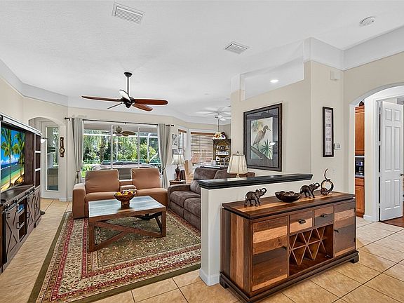 Welcome to Hammock Lakes! This 3-bed, 2-bath home is located in one of Vero's communities with natural gas! Inside boasts high, volume ceilings, and an open and split floor plan with multiple living and dining areas. Tile in the living areas and carpet in the bedrooms and formal living room. A spacious laundry room with extra cabinets and a utility sink. The screened back patio has a built-in jacuzzi and all located on a spacious 0.33-acre fenced lot. Hurricane-ready with a whole-home generator. 2016 A/C. The community offers a pool, basketball, tennis, and pickleball. Room sizes approximate.