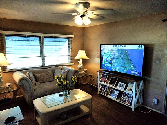 This is a 1 bedroom 1 bath home, currently configured as a 2 bedroom, with the Florida Room having a bed. With the additional size of the Florida Room, this home is close to 700 square feet of living area. It has a newer hot water heater, and comes mostly furnished. The home has a membrane coated roof over, newly paved streets with concrete sidewalks. There is a laundry in the shed, which is inside the screened porch area. It has a 2 carport, window blinds, 4 ceiling fans, with central air & heat. The plank floors will likely need to be replaced.     The home is located in Blue Horizon a 55+ community, with SUPER LOW LOT RENT of $575 a month which includes trash and landscaping, water is about $40 per month depending upon usage. A 15-minute drive to the sandy beaches of the Gulf. NO PETS allowed, except service animals. There are approximately 101 units in Blue Horizon. The Community Amenities Include: swimming pool, laundry, shuffleboard and clubhouse. The park is located near public transportation, and close access to US Highway 19. Close to major shopping and services.