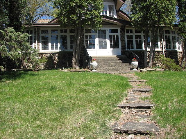 Classic Arts and Crafts masterpiece -on 1.49 acres with 159 feet of prime south facing Lake Minnetonka shoreline. Mini estate with four buildings including a drive in boat house and an artist studio. Oak beamed ceilings with pocket doors in library and dining room. Huge field stone fireplace. Wrap around three season front porch. Large flagstone patio. Owner will consider trade or contract for deed.
