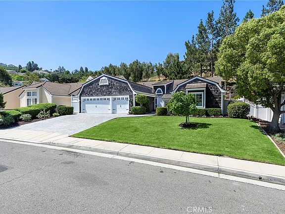 Welcome to 5146 E Greensboro Ln, a charming single-story home nestled in the picturesque and highly sought-after community of Pointe Quissett in Anaheim Hills. This New England-style residence boasts 3 spacious bedrooms, 2.5 bathrooms, and a delightful bonus sunroom addition (permitted), providing an abundance of living space of approximately 2,100 square feet. The home features a fully upgraded kitchen complete with granite countertops, sleek white cabinetry, a Viking 5-burner cooktop, double ovens, and all stainless steel appliances, including a Bosch dishwasher. The beautiful, new wood-like plank flooring throughout the home, even in the closets, adds warmth and elegance to the space and allows for easy-peasy maintenance. The remodeled bathrooms include a luxurious oversized shower in one and shower/tub combination in the other with frameless glass enclosures in both. Additional highlights include double/triple pane windows, wainscoting, crown molding, decorative beams with corbels, wide baseboards, French doors, skylights, cedar-lined walk-in closets, window seats, and recessed lighting. The serene backyard is perfect for relaxing or entertaining, with lush landscaping, a cozy, wood-burning fire pit, built-in seating, and exquisite River Rock stonework. The oversized, attached 3-car garage is outfitted with epoxied floors, built-in storage cabinetry, and a water softener system, adding both convenience and comfort to this beautiful home. Oh, and most recently, a new paver driveway and walkway was installed to add a little more flair to the appeal of this beauty. Situated on a generous and canopied tree-lot of over 15,000 sq ft, this home is ideally located near top-rated schools, shops/eateries and friendly neighbors, making it the perfect blend of style and community. This never-before listed for-sale, rare gem is sure to go quickly—you won’t want this one to get away.