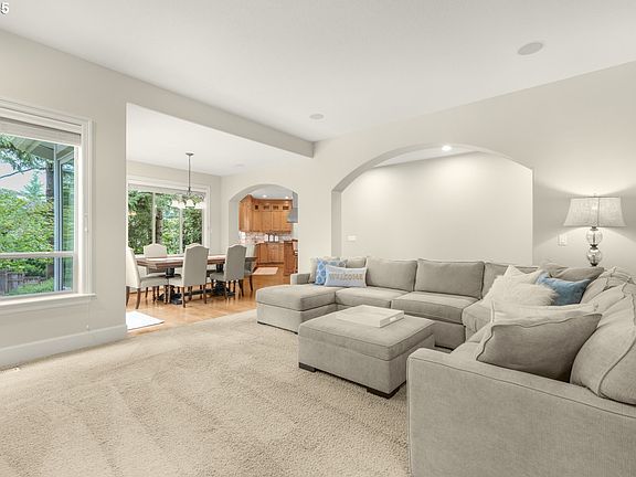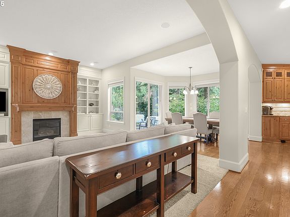 Located at the end of a quiet cul-de-sac on a beautiful, tree-lined street with mature landscaping, this 4-bedroom, 3.5-bath home offers 4,000 sq ft of thoughtfully designed living space in one of West Linn’s most desirable neighborhoods. Step into a vaulted entryway that immediately sets a welcoming tone. To one side, you'll find the formal living room with fireplace, perfect for quiet mornings or evening conversations. Opposite is the formal dining room, ready for holiday gatherings and special dinners. Beyond the entry, a hallway leads to a main-level office with an adjacent full bath, ideal for a guest suite, private workspace, or multi-generational living. On the other side of the home, the space opens up to the kitchen and family room—the heart of daily life. The kitchen features both a butler’s pantry with wine fridge and a walk-in pantry, offering exceptional storage and functionality. The family room includes a casual dining area and flows seamlessly to the backyard, creating an ideal space for connection and everyday living. Upstairs, you’ll find four generous bedrooms, including an oversized primary suite featuring a fireplace, walk-in closet, and a spa-like bathroom with soaking tub and separate shower. A large bonus room wired for surround sound completes the upper level—perfect for movie nights, play, or creative projects. The backyard is a true extension of the living space, designed for year-round enjoyment. A spacious patio, built-in gas fireplace, and serene natural backdrop make it perfect for entertaining, relaxing, or simply enjoying the regular visits from local wildlife. Recent 2025 updates include new furnaces, new air conditioning, and fresh interior and exterior paint. Additional features: 3-car garage, central vacuum system, and a peaceful setting in an established neighborhood known for its charm and mature landscaping. This home checks all the boxes!