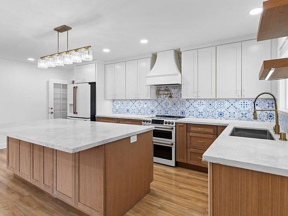 Gorgeous chef's kitchen with custom cabinetry, quartz countertops, designer backsplash, and all-new stainless steel appliances.