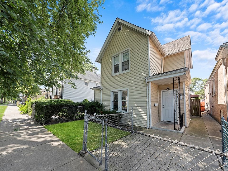 Move-in ready two-story home! The property offers 4 bedrooms, 2 full baths, and a convenient laundry area. Enjoy gleaming hardwood floors throughout and a bright, spacious living room that flows into the central dining area and modern kitchen featuring black quartz countertops, subway tile backsplash, and stainless steel appliances. Both bathrooms showcase sleek, contemporary finishes with large black marble-style tiles and stylish vanities. The fenced backyard provides ample space for outdoor entertaining and includes two parking spots. Conveniently located near Midway Airport, Soto Acero Schools, and just minutes from I-55.