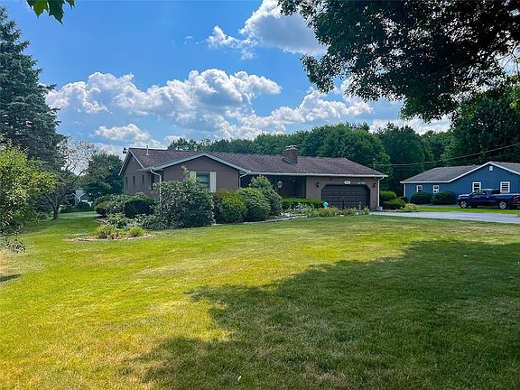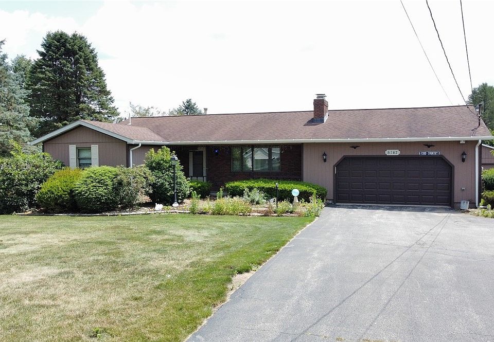 Inviting one owner custom built home on over an acre in much desired Center Twp, this brick and frame ranch offers perfect one level living. Living room made cozy w/gas log fireplace, an eat in kitchen with separate dining area that leads to a covered rear deck overlooking the level yard. Finished lower level w/wood burning stove. First floor laundry. A two stall attached garage completes the home and car lover's rejoice, an additional oversized two stall det/garage with water, heat, and electricity is also offered.! Whole house generator is also included.