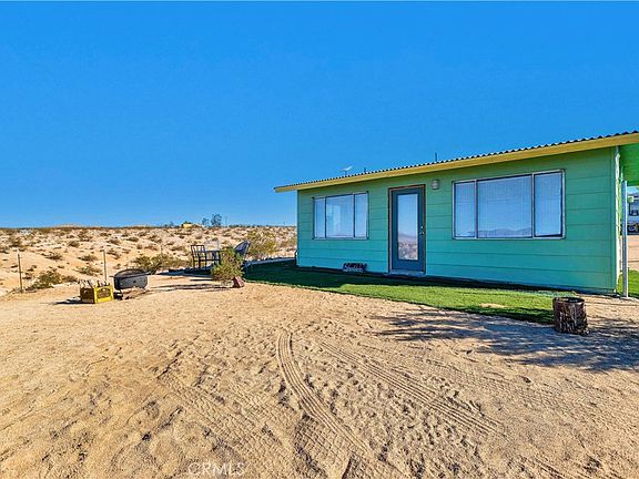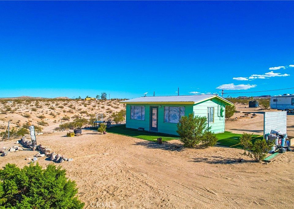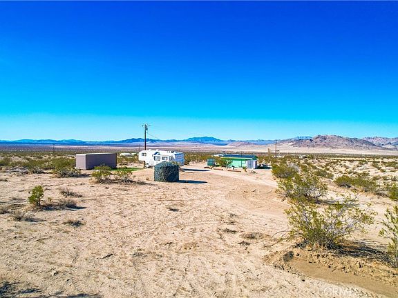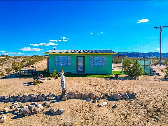 Are you ready for a REAL desert experience? Surrounded by 30 acres BLM land it’s time to escape in one of the Hi-Desert’s best kept secrets! Turnkey, completely furnished, and located in the perfect spot that allows you to really get away and lose yourself in EPIC panoramic views and captivating desert landscapes. With some of the most phenomenal sunrises and sunsets the desert has to offer Johnson Valley is the premier area for those yearning for a true secluded cabin of solitude needed for your dream of escape. Driving through the rolling hills and surrounded by beautiful lush desert land, mountains, and gorgeous skyline will set the mood. Pulling up to this cabin you’ll be hard pressed to ever leave! Situated perfectly on this massive 5 acre parcel of land to take advantage of the views, outfitted with a corrugated Onduras roof that’s upgraded using stormgard material, and hip green exterior showcases it’s character. Walking in you find it’s much larger than you would imagine as the open concept promotes every inch of square footage. Wonderful ceramic wood tile flooring flows throughout the floor plan and picture windows that show off that view create lots of natural light. The kitchen opens up to the rest of the cabin making it easy to entertain guests and includes a retro sink, hip retro oven, stainless steel hood, stainless steel refrigerator, and hip light fixture! Bathroom comes equipped with shower, vanity, commode, and mirror! Stepping out to the exterior is the perfect spot to enjoy some of those soft desert breezes while barbecuing or entertaining friends. OHV enthusiasts look no further! Not far away are some of the best trails Johnson Valley is famous for! For those looking for a great hike we’ve got you covered with some truly captivating desert trails full of hidden secrets, ancient ruins, and much more! With 30 acres of BLM land surrounding the property this isn’t just a cabin in the desert, this is an adventure! Additional features include 5th wheel, 26 ft. cargo container, laundry room with washer and more! Let’s start your adventure today!