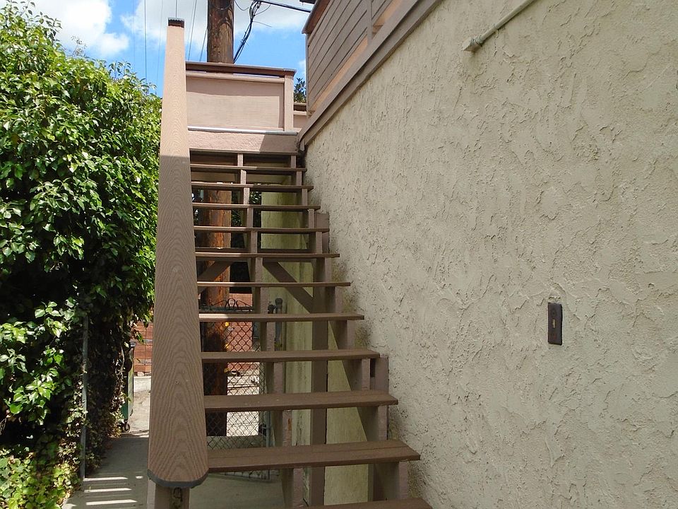 Light and bright upstairs Studio apartment with large, private deck. Views of Heartwell Park from the deck. Close to Long Beach City College & Lakewood Mall. and across the street from Heartwell Park. New laminate floors. Has two closets for extra storage, and a built-in desk. On-site coin operated laundry. Tenant pays gas and electricity. No garages are currently available, but it's easy to find parking on the street. However, tenant must obtain a parking permit from the city of Long Beach. Tenant responsible for gas, electric, and trash. $30 application and credit check fee is non-refundable.