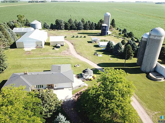 Acreage Alert! Welcome to this spacious ranch style home nestled on approximately 5.4 acres of peaceful Rock County land. This impressive property offers three main floor bedrooms, a dedicated office space, and generous living areas designed for comfort and functionality. The main floor also features an expansive addition, including a large laundry room and an extra bathroom. An additional laundry is in the lower level for added convenience. You'll love the abundance of cabinetry, closet space, and storage throughout the home. Downstairs, enjoy a kitchen or wet bar area, ideal for entertaining or extended living.The property truly shines with multiple outbuildings ideal for machinery, hobbies, or business needs. The largest shed measures 56' x 90', another is 50' x 45', with four additional outbuildings for versatile use. Ensuring continuous operation, this acreage has an automatic generator. Whether you're soaking in breathtaking sunrises and sunsets or enjoying the peaceful views of rolling prairie, this acreage offers the space, setting, and tranquility you've been waiting for.