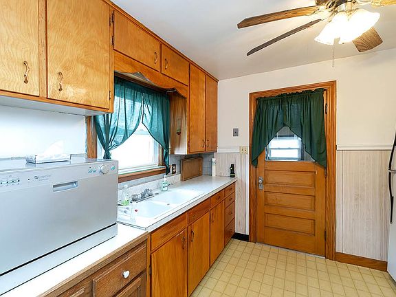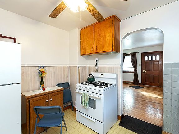 Your new three bed, one bath home with one car detached garage is waiting for you. Interior has been freshly painted. You'll find beautiful hardwood flooring in the living room and both guest bedrooms. Full bath has stylish tile wainscoting and a hall side linen closet. Kitchen includes tile backsplash and all appliances. Just off the kitchen is the mudroom with walk-out to the side yard. Upstairs you'll find your spacious master retreat with 14' x 3' walk-in closet. Basement has been finished with a wet bar and family room. Family room includes an elegant corner hutch and a built-in bench that would make an excellent reading nook. Basement also holds the laundry/utility room and a bonus shower. Fenced backyard gives you a great for backyard barbeques. New Luxaire furnace in 2016. Both house and garage received a new fifty-year roof in 2015.