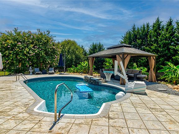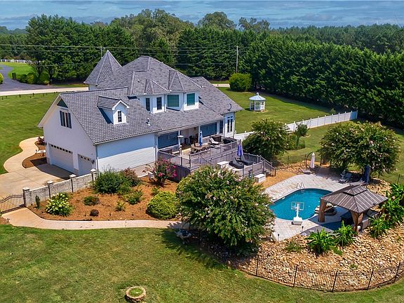 The dream of owning a Victorian home with a quaint front yard gazebo is well within your reach! THIS stunning home will make your dreams come true! You will feel the longing to call this place home as soon as you enter the driveway. The gorgeous laid out property truly takes your breath away! Let's start outside with everything this stately home has to offer! It is perfectly situated on 2.26 acres and it is all nicely leveled. Entertain your friends and family under the cozy outdoor gazebo, relax in the hot tub, lay in the hammock or just grab a lounger and sit by the saltwater pool or better yet, grab a float and sunbathe! The multi level trex decking which is massive in size has endless possibilities.....but the major two goals will be to chill and grill! Are you like everyone else and don't want the hassle of an HOA? Are you looking to own those chickens you've always wanted? You're in luck!! The chicken coop is in place and ready for them! In the front yard, do you remember the quaint gazebo mentioned? Spend special moments having tea with your daughter, or granddaughter. Men, we have a bonus for you too-- an outbuilding with electricity. As we head inside, the front porch is another place to soak up the beauty of the home. As you walk through the front door, the elegant dining room is on your right. To your left, don't miss out on the study that is tucked away. The spacious family room, breakfast nook (overlooking the pool) and gorgeous kitchen are all open to one another. The soaring ceilings with an abundance of lighting is just plain good for the soul! Your lovely master suite awaits you on the main level-- complete with a sitting area, fireplace and ensuite master bath. The sinks and the toilet have gold inlays. Yes, for real! A half bath and walk in laundry off the garage finishes the first floor tour. The detailed staircase travels you to the upstairs. In the loft area, there's so much you can do with this space. The previous owner ran a bed and breakfast in the upstairs area. Each bedroom upstairs has it's own theme-- be sure to check out the clouds on the ceiling in one of them. It won't be a paint over once you see it in person. You will love it! That clawfoot tub, though! It truly takes you in mentally. You'll be ready to grab the candles and a glass of your choice beverage. The bonus room is a very gracious size and is sure to be a family favorite. Guess what? There's a secret .... there's a hidden room for you! It is located behind the bookcases. ...be sure not to miss it. Special mentions....hardwood and tile flooring, granite countertops, arch way doors, chandeliers, exquisite designed crown molding, double tray ceilings. New pool liner, newer water heater. This home is EVERYTHING and likely has EVERYTHING you are looking for! Let's get you home!