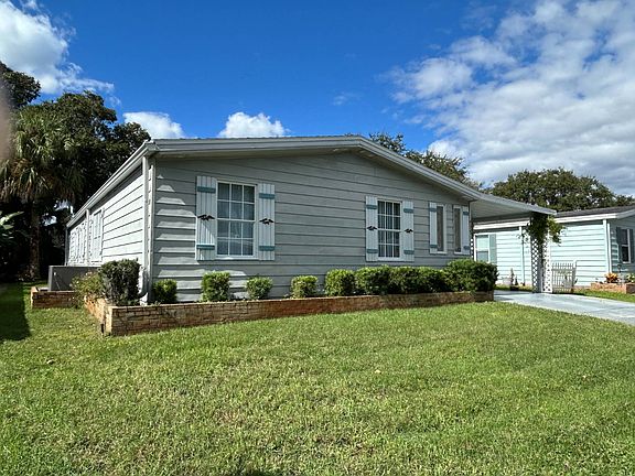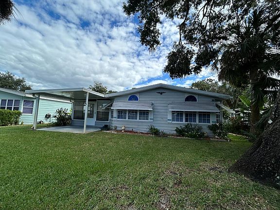 This home is a must see in an intracoastal waterfront 55+ community, This 2 bedroom 2 bath 1500+ square foot home is on a beautiful lake & private back yard for enjoying the sunsets, and the lake is great for fishing. There's a large formal living room and dining room, very spacious eat in kitchen with lots of cabinets and pantry, skylights, while enjoying an adjacent family room that all looks out to the water, there is an all weather Florida room off of the kitchen that's 12 x 20 that is great for entertaining and also faces the water. This is a great home with plenty of room for Guests. It is a split bedroom plan - master bedroom can host a king size bedroom suite, Master bath has double sinks, walk-in shower, and a garden tub with skylights. There is a separate inside laundry room with a washer and dryer and a pantry that makes everything convenient. Home is up high & has a nice long driveway that can host two vehicles, also a large shed for storage. A/C is a 2022, new Plumbing, Shingle roof 2021. This home has already passed a 4 point inspection too! Lot rent is $1,173. This community is Resort living, with 3 scenic, lakes, a tropical ambience, 2 club houses with lots of activities, tennis courts, Pickleball, basketball, fitness center, 2 pools, 2 hot tubs, 2 saunas. There is something for everyone here. Your own private Community boat ramp, Fishing pier great for fishing or crabbing. Pet and motorcycle friendly. Close to shopping, restaurants, entertainment, medical, and minutes to beaches make this spacious home, your winter retreat or forever gem. ALL INFORMATION DEEMED ACCURATE BUT NOT GUARANTEED. Additional fees for amenities may apply. Agent and or Company is not responsible for quoting current monthly fees, lot rent, or dues/fees associated with the community or home. Those figures are the responsibility of the buyer and community manager/owner to obtain/ disclose.
