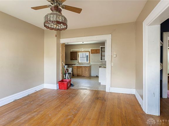 Fenced yardLarge windowsBeautiful hardwood floorsFront porchWide wood trimDining roomVinyl replacement