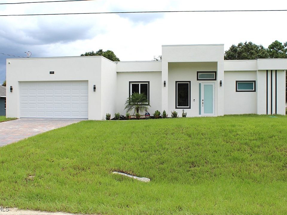 Nestled in a tranquil Lehigh Acres 33972 neighborhood, this custom home with High-end finish epitomizes modern luxury and convenience. The interior boasts sleek 14’ ft high cuffed ceiling, 24"x48" ceramic tile flooring and a contemporary kitchen equipped with two-tone solid wood cabinetry, carrara quartz countertops with an isle with waterfall, top of the line stainless steel appliances including a side by side smart refrigerator with Craft Ice maker of large slow-melting clear ice spheres to enhance your cocktails and other beverages, an over-the-range microwave with external venting routes smoke and odors through a duct that lead outside. Bathrooms offer a spa-like experience with LED-lit, anti-fog mirrors and stainless steel shower panel systems featuring rainfall and massage functions, ceiling bathroom exhaust fan with bluetooth stereo speaker and adjustable LED lights and night light. Enhanced security features comprise eight(8) HD night vision cameras and a Ring Doorbell. The laundry room is equipped with an advanced Samsung smart washer & dryer. This property includes the installation of a brand-new 6-foot-high metal fence, designed to provide both privacy and functionality. The fence will encompass the full perimeter of the property and will include a double gate on one side, ideal for accommodating commercial trucks, boats, RVs, and similar vehicles, along with a single gate on the opposite side for convenient pedestrian access, complemented by a rain-sensor-equipped sprinkler system. *Upon execution of the purchase contract, the qualified buyer may select the fence color, with options of white or bronze. The fence will be fully installed prior to the closing date. This move-in-ready residence seamlessly combines style, comfort, and practicality. Conveniently located near local amenities, schools, and parks, it offers both serenity and accessibility. Schedule your private showing today!