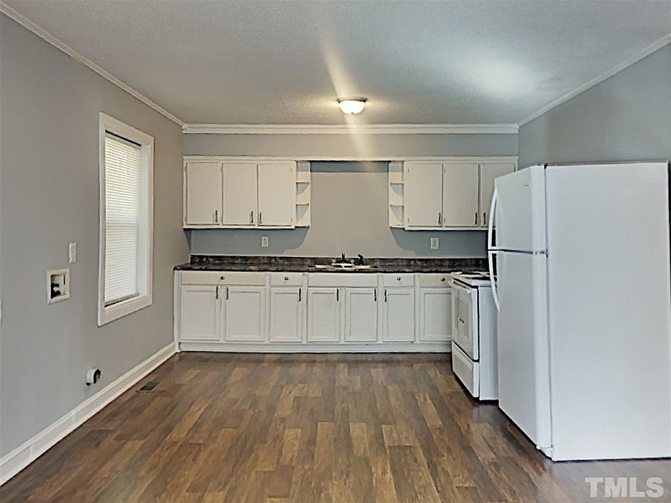 FRESH PAINT w/ NEW CARPET IN BEDROOMS. Central Durham duplex (left side-Unit A) close to NCCU /Fayetteville St /Apex Highway. Has 2 BRs, 1 full bath & 763 s.f. Wood laminate floor in living rm & kitchen/dining areas. Kitchen has white cabinets. Bathroom features white subway tile. Washer/dryer connection. Central air. Separate side entrance w/covered porch. Ellis Place. (PICS ARE CURRENT.)