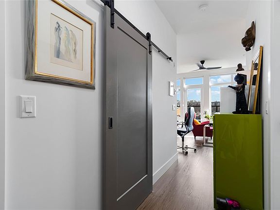 The Ironworks building, a modern, well-appointed building near the heart of Downtown Victoria, just steps from pubs, cafe's, and the Inner Harbour walkway. This top-floor, south-facing unit offers nearly 500 sqft of living space overlooking the building’s quiet, spacious courtyard with views toward the city core. The 1-bed 1-bath home combines modern design with smart function, featuring in-suite laundry, sleek black stainless appliances and two-tone kitchen cabinetry all in pristine condition. Flexible layout options allow you to create a stylish and comfortable space to suit your lifestyle. The floor to ceiling windows and 9ft ceilings provide an abundance of natural light and the unit includes secure underground parking, storage, and the balance of the 2-5-10 warranty. This professionally managed building provides a great investment and great place to call home. Come view one of the best units in the building.