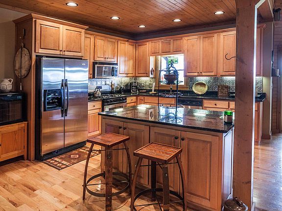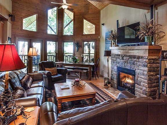 Successful vacation rental history with this upscale Mountain View cabin. Open great room w/ T&G walls, soaring ceilings and large windows for the big views. Enjoy relaxing or playing cards on the oversized covered deck. Beautiful kitchen w/ eat in island, granite counters w/metal tile backsplash and SS appliances. Master suite on the main floor w/ access to the deck and views. Upper level has the guest bedrooms plus a loft which could serve as a fourth sleeping area. The terrace level has a bonus room and game room, after the fun, you can step out and relax in your hot tub Don't worry there is plenty of parking area in the private driveway, carport and drive under garage. Firepit is perfect for those late night marshmallow roast. This home has exactly what you are looking for views, quality, comfort, and privacy.