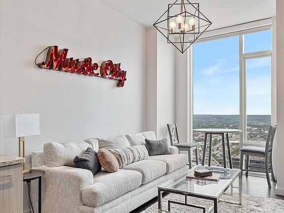 Turn your dreams of living in the city… into reality. With a 98% walkability score, your new home will be STEPS from all downtown Nashville offers. Walk into your foyer lined with designer natural grasscloth Phillip Jeffries wallpaper. Breathe in home, exhale the city being 41 floors up. In this condo you will find a built-in bar, hall closet, & walk-in primary closet all customized by California Closets. While in the clouds of this home, you will experience captivating sunsets and firework views from the baseball stadium.