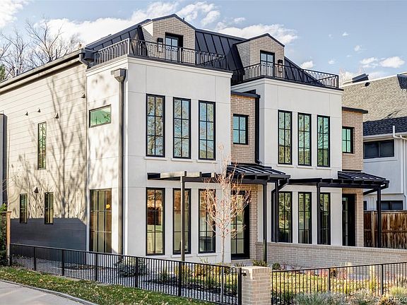 Sophistication melds with modern design in this brand new duplex, perfectly poised in the heart of Cherry Creek North. A contemporary exterior with a welcoming front patio leads into an open-concept floorplan adorned with designer finishes. A formal dining room with exposed large windows, while the chef’s kitchen boasts high-end appliances and an expansive island. The living area, centered by a modern fireplace and cozy reading nook, opens through a vast wall of glass to a private patio with a fireplace. Upstairs, the stunning primary suite impresses with beams and a spa-worthy bath with a wet room. Two additional bedrooms and a flexible loft space with vaulted ceilings, a wet bar and access to a rooftop deck provide elevated living. The finished basement extends the entertainment with an arched bar, dedicated gym and spacious rec area. Just moments from Cherry Creek Shopping Center, this home embodies refined urban living.