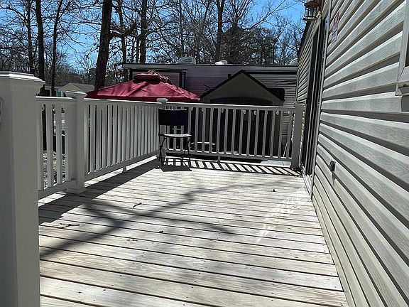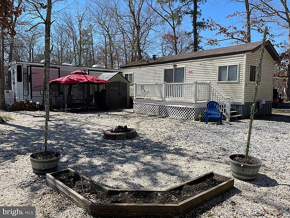 Welcome to this 1997 park model boasting 2 bedrooms and 2 bathrooms. The living room is equipped with a TV and a futon couch, perfect for accommodating additional guests. While the kitchen may be efficiency-sized, it is fully equipped with all essentials including a microwave, gas range, and full-size refrigerator. Outside, you'll find a newer wood and vinyl deck, providing an ideal spot to bask in the summer breezes. Situated on a large corner lot, this home comes complete with a picnic table, screened tent, and fire pit—ideal for roasting marshmallows on those balmy summer evenings. Also included is an 8x8 Vinyl Shed. Conveniently located within walking distance to both the pool and the lake, where a picturesque fountain sits amidst a beach-lined shore. The lake also features a dock for catch and release fishing. The pool area boasts a small splash zone & water slide and is surrounded by tables, chairs, lounges, and gazebos. Additionally, there's a spacious covered area for games, bingo, and live entertainment, along with an adult lounge exclusively available for members. The park offers a store stocked with necessities, a game room, snack bar, and a designated area for children. Located just a short distance from shopping, Jersey beaches, and vibrant nightlife, this property truly offers the best of everything—at a fraction of the cost of maintaining a traditional home. Don't miss out on this incredible opportunity! BONUS: Ask about the aluminum boat! THIS IS SEASONAL BUT ALLOWS WEEKEND STAYS OFF SEASON.