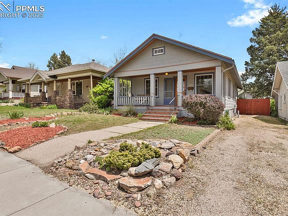 Charming 1920's bungalow located in the desirable Shooks Run neighborhood, situated on an oversized lot with R-2 zoning, alley access, RV parking, and Pikes Peak views. This home boasts original details from the beautiful hardwood floors, wide baseboards, built-ins, original doors/hardware, and covered front porch. Enjoy the amount of natural light pouring in from the updated high-end Pella windows and the ease of main floor living. Upon walking in you are greeted with newly painted interior walls, and open concept living/dining room area with archway. The kitchen has modern updates to include GE stainless steel appliances, modern hood, raised ceiling with wood beams, skylight, double oven gas range, modern lighting, breakfast bar, and custom tile counter-tops/flooring. The kitchen has wood french doors that lead to the backyard. There is a spacious primary suite addition that has an adjoining bathroom, large closet, and sliding door that leads to the back deck. The large primary bedroom has beautiful vaulted ceilings with beams, wood floors, ceiling fan, and a skylight. The adjoining bathroom has a jetted tub/shower combo, tile surround, wood floors, and plenty of storage. There is an additional bedroom and full bathroom on the main level. The lower level has a bonus room that could be used as a workout room or an office. The laundry room has ample amount of additional storage. Fully fenced in backyard has a large deck and a detached finished one car garage with a heater and electric-perfect for a workshop space! Some recent updates include: interior paint 2025, water heater 2019, a/c 2012, furnace 2012, roof 2011, and garage door opener. Enjoy being conveniently located to downtown, local coffee shops, local restaurants, parks, walking trails, schools, shopping, entertainment, walkability, hospitals, Olympic Training Center, and close proximity to I-25 and Hwy 24 that leads up to the Colorado mountains!