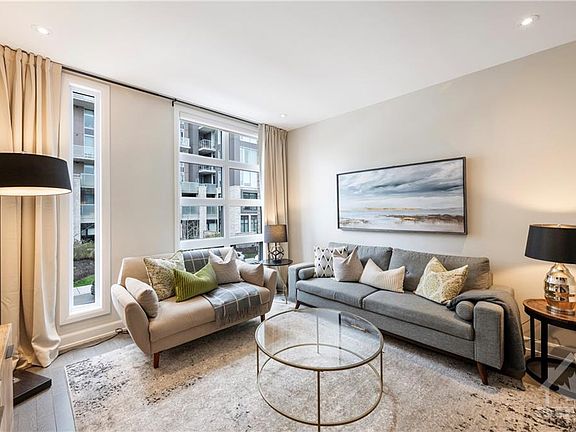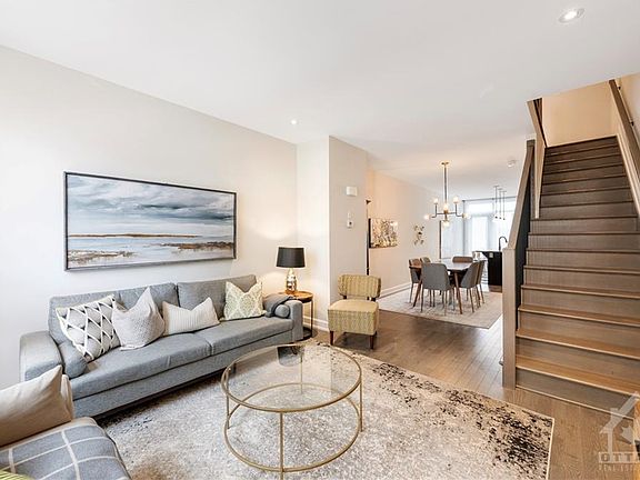 This 3 storey freehold townhome in Greystone Village is luxury modern living at its finest. With large bright windows, chic finishes and a location with the perfect urban-nature balance, this turnkey residence is ready to make your family feel at home. Store coats in the closet by the garage entrance and relax in the bright den on the main level with the powder room close by. Ascend to the 2nd level into the airy kitchen and open living/dining area. The kitchen is outfitted with modern lighting, stainless steel appliances, granite counters and island bar with double sink. On the 3rd level is a bedroom, sparkling full bath, laundry cabinet and a grand primary bedroom with sweeping windows and 3pc ensuite. Enjoy the Rideau River Trail or cast a kayak off the public launch, seconds from your door! A stones throw from Main St, transit and quick 417 access, Greystone Village is a sustainable LEED neighbourhood and is the place for any modern urbanite to call home. Common Assoc fee: $120/mo