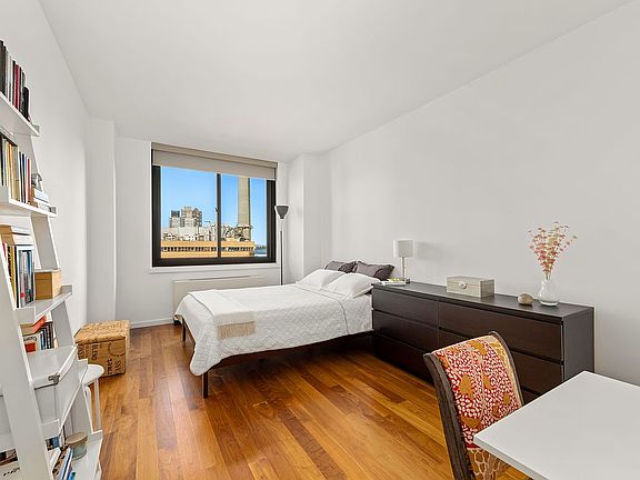 This North facing apartment features river views, wonderful closet space for all of your storage needs and a private balcony. The living room is spacious and inviting with room for both dining and relaxing, receiving abundant light through oversized windows that overlook open garden and city views. The natural walnut floors further enhance the space.