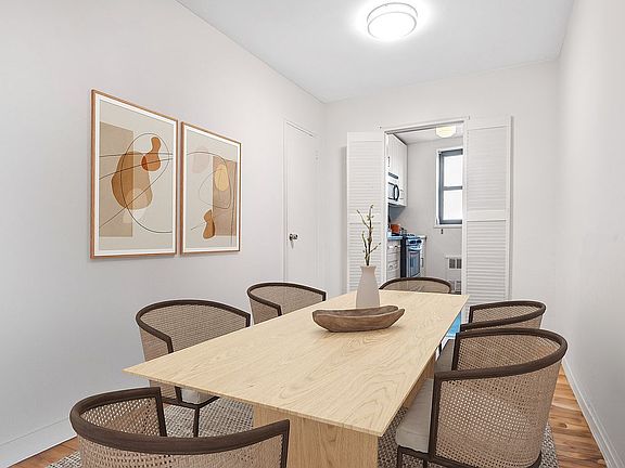 One of the best lines in the building, upon entry into 5D, there is a spacious foyer with a coat closet that then leads to a huge living room. A dining room set up can beautifully fit in this long living room. Alternatively, the foyer continues toward the kitchen into a dining area that can easily host a large dinner party. The windowed kitchen has tons of storage, stainless steel appliances including a dishwasher, with a pantry closet just outside the kitchen.