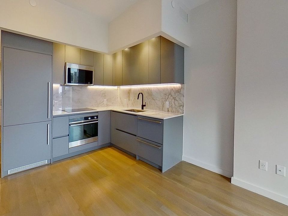This corner studio is highly polished, bathed in natural light, with a complete chef's kitchen and spa inspired bath. An entry hall leads past the bath and washer-dryer to open up into an open living area with an L-shaped corner kitchen and giant windows facing south and east. From the living area, there's a view of the East River across the entrance to Carl Schurz Park at the end of the block. Get inspired to cook beautifully in this Fisher Paykel kitchen with imported Italian cabinetry and induction range top. Fridge, oven, microwave and dishwasher are elegantly incorporated into matte grey cabinets with high performance Dekton counter tops with 12" brushed stainless box sink. Recessed LED lighting adds to the drama. Floors are natural oak, and the apartment has a central climate control system. Designed for energy efficiency, this apartment is a Passive House champion, assuring lower power use and almost no carbon footprint. CONVIVIUM is now fully open, and our first residents have moved in, with more new neighbors each week. Enjoy the 360 degree landscaped roof deck, or chill in our intimate garden courtyard. There's a 24 hour fitness center and a large, super comfortable residents' lounge with event kitchen and outdoor grilling stations. A lower level lounge with screening area, media arcade and playroom add to the thoughtful amenities package. Our onsite leasing office is open daily. Please contact us for your private tour!