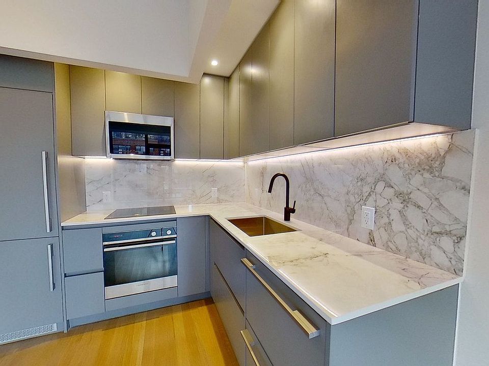 This corner studio is highly polished, bathed in natural light, with a complete chef's kitchen and spa inspired bath. An entry hall leads past the bath and washer-dryer to open up into an open living area with an L-shaped corner kitchen and giant windows facing south and east. From the living area, there's a view of the East River across the entrance to Carl Schurz Park at the end of the block. Get inspired to cook beautifully in this Fisher Paykel kitchen with imported Italian cabinetry and induction range top. Fridge, oven, microwave and dishwasher are elegantly incorporated into matte grey cabinets with high performance Dekton counter tops with 12" brushed stainless box sink. Recessed LED lighting adds to the drama. Floors are natural oak, and the apartment has a central climate control system. Designed for energy efficiency, this apartment is a Passive House champion, assuring lower power use and almost no carbon footprint. CONVIVIUM is now fully open, and our first residents have moved in, with more new neighbors each week. Enjoy the 360 degree landscaped roof deck, or chill in our intimate garden courtyard. There's a 24 hour fitness center and a large, super comfortable residents' lounge with event kitchen and outdoor grilling stations. A lower level lounge with screening area, media arcade and playroom add to the thoughtful amenities package. Our onsite leasing office is open daily. Please contact us for your private tour!