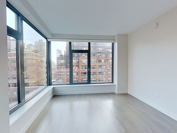 This corner studio is highly polished, bathed in natural light, with a complete chef's kitchen and spa inspired bath. An entry hall leads past the bath and washer-dryer to open up into an open living area with an L-shaped corner kitchen and giant windows facing south and east. From the living area, there's a view of the East River across the entrance to Carl Schurz Park at the end of the block. Get inspired to cook beautifully in this Fisher Paykel kitchen with imported Italian cabinetry and induction range top. Fridge, oven, microwave and dishwasher are elegantly incorporated into matte grey cabinets with high performance Dekton counter tops with 12" brushed stainless box sink. Recessed LED lighting adds to the drama. Floors are natural oak, and the apartment has a central climate control system. Designed for energy efficiency, this apartment is a Passive House champion, assuring lower power use and almost no carbon footprint. CONVIVIUM is now fully open, and our first residents have moved in, with more new neighbors each week. Enjoy the 360 degree landscaped roof deck, or chill in our intimate garden courtyard. There's a 24 hour fitness center and a large, super comfortable residents' lounge with event kitchen and outdoor grilling stations. A lower level lounge with screening area, media arcade and playroom add to the thoughtful amenities package. Our onsite leasing office is open daily. Please contact us for your private tour!