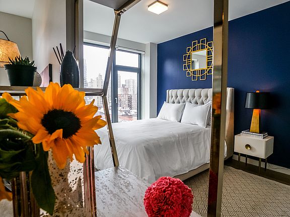 CONVIVIUM is NYC's newest luxury rental tower, located on East 86th St and York Ave. Designed for health, well-being, total comfort and upscale luxury, this new development also introduces the most airtight construction to reduce carbon footprint and lower monthly utility costs. The apartments at CONVIVIUM are intended for flexibility. This unit is a One Bedroom with an open flow between rooms for light and air. All homes feature open designer kitchens with Dekton countertops, Italian cabinetry, Fisher Paykel appliances including dishwasher and microwave, and stone floors. Apartments have high ceilings and over-sized triple glazed windows that have been treated to provide thermal retention and complete noise abatement. Living areas have rich oak floors throughout, lots of natural light and central climate control. Bathrooms include custom sinks, made for CONVIVIUM by Porcelanosa, polished chrome water fixtures from Dornbracht, deep soaking tubs and hand-held shower heads as well as one piece Duravit toilets. Each bath has Italian cabinetry and large mirror. Also, every home has its own in-unit washer-dryer. We are open daily, offering both in-person and FaceTime tours. Contact us today to schedule your visit!