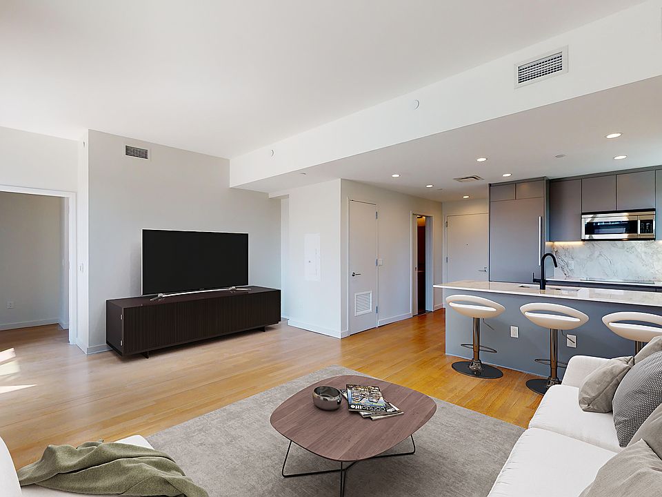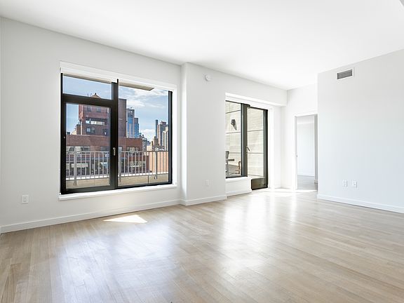 Live with majesty and lots of natural light in this incredible over-sized one bedroom with one and a half baths and a large private terrace with gas grill, facing south from a high floor at CONVIVIUM, Yorkville's greatest luxury rental. A wide central living room has a wall of south facing windows with glass door opening onto the awe-inspiring terrace. A fully loaded gourmet kitchen, featuring top of line Fisher Paykel induction cook top, convection oven, microwave, paneled refrigerator and double-decker dishwasher is surrounded by sleek Italian cabinetry. A Dekton stone island with breakfast bar separates the kitchen and living room . There's a washer-dryer closet off the kitchen, and the half bath is just off the apartment entrance. The bedroom also faces south, with enormous windows and a pass-thru dressing room which leads into the main bathroom. There's a full tub and shower, with Dornbracht water fixtures and a custom Porcelanosa sink. This is far from an ordinary one bedroom! CONVIVIUM also offers a suite of thoughtful amenities including multiple lounge spaces, a landscaped courtyard, cellar game room and media lounge, playroom, dog spa and the greatest common roof deck on the UES! We offer tours by appointment only. These photos are of exact apartment unit. Small dogs under 25 lbs allowed. Showings by appointment.