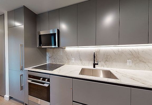 Here's a beautiful, comfortable and elegant over-sized studio where everything is bright and airy and new! It's available right away. Enter a long entryway past a high-end Fisher Paykel kitchen with dishwasher and microwave, Italian paneled cabinetry, Dekton counter tops, built-in led lighting and designer faucet and sink. Open into the spacious living quarters, with floor to ceiling triple glazed windows, which retain climate and abate sound from outside. Rich natural oak floors add warmth to the space, and there is a spa inspired tile bathroom with washer-dryer. The bath has a deep soaking tub with polished chrome shower, large vanity with custom sink, Dornbracht water fixtures, Italian cabinetry and a one-piece Duravit toilet. CONVIVIUM is the winner of NYSERDA's Buildings of Excellence award for its Passive House design, sure to save money on utilities while reducing its carbon footprint to almost zero! The large amenities package includes numerous indoor and outdoor lounge spaces, a co-working and library space with stone columns and paneled walls, a media lounge, pet playground, dog spa, bike room, video arcade and a breathtaking roof deck with 360 degree views of the city and the east river. We offer tours by appointment.