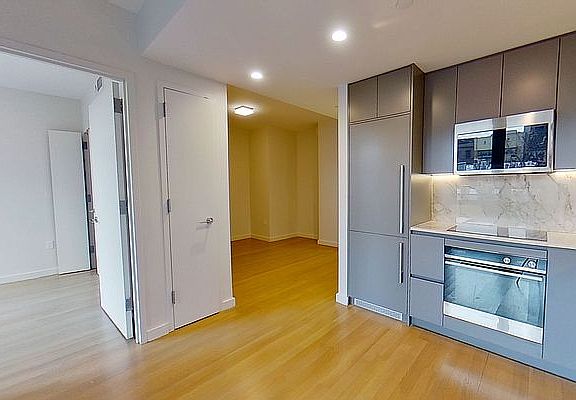 This one bedroom has a super efficient layout with 3 separate spaces for living, working and sleeping. It's compact but mighty, featuring a top of line Fisher Paykel kitchen with induction cook top, paneled fridge and dishwasher, plus sleek Italian paneled built-ins. There is a large work-from-home office area AND a separate bedroom with floor to ceiling windows. The home office area is wide open with overhead lighting and a closet in the north wall. The kitchen opens to the living room, which opens to a private outdoor balcony which overlooks the landscaped garden below and townhouse rooftops to the north. The spa-inspired bathroom has a custom sink from Porcelanosa, polished chrome water fixtures from Dornbracht and a one piece Duravit toilet. Stone tiles and recessed lighting add to the elegant finish. The building offers 300 mbps wifi and a suite of luxury amenities including a fitness center, multiple lounge spaces, and the most amazing common roof deck on the UES. Small pets are welcome. This home is is available March 4 for up to a seventeen mo lease without increase!