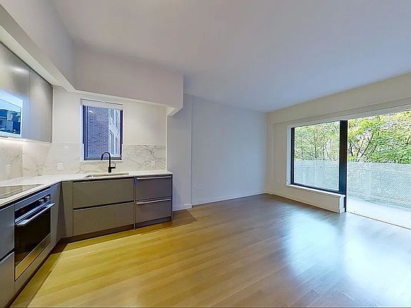 Enjoy the seasonal changes from just above treetop level in this gorgeous, contemporary home with a private balcony overlooking the gardens and foliage of the UES. An open living room has a corner gourmet kitchen with a north facing window. A wall of over-sized windows faces east across the balcony. The kitchen is top line, featuring Fisher Paykel fridge, stove, induction cooktop, microwave and dishwasher. Italian Linnea Decor cabinetry and Moen water fixtures add to the sharp design. Dekton counter tops make the kitchen sparkle. A center hallway leads to the bedroom area with a wall of closets, and the ensuite bath has a washer-dryer closet, full tub and shower, custom Porcelanosa sink, Italian paneled vanity and rich stone tile. CONVIVIUM is a new, award winning, highly energy efficient luxury tower at 86th Street, just east of York Ave. Carl Schurz Park is at the end of the block, overlooking the East River. BOND New York Properties is a licensed real estate broker that proudly supports equal housing opportunity.