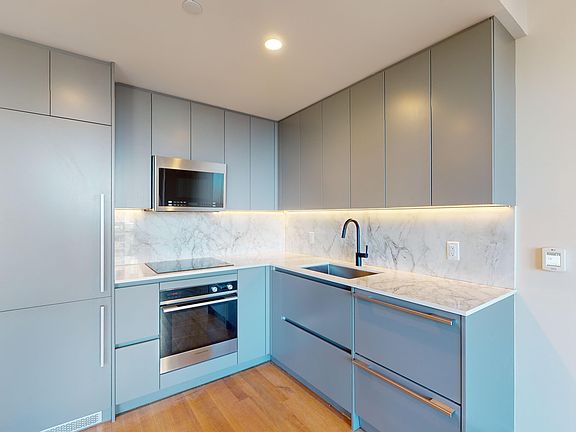 It's compact but mighty, featuring a top of line Fisher Paykel kitchen with induction cook top, paneled fridge and dishwasher, plus sleek Italian paneled built-ins. The kitchen opens to the living space, which opens to a private outdoor balcony which overlooks the landscaped garden below and townhouse rooftops to the north. The spa-inspired bathroom has a custom sink from Porcelanosa, polished chrome water fixtures from Dornbracht and a one piece Duravit toilet. Stone tiles and recessed lighting add to the elegant finish. The building offers 300 mbps wifi and a suite of luxury amenities including a fitness center, multiple lounge spaces, and the most amazing common roof deck on the UES. Small pets are welcome.