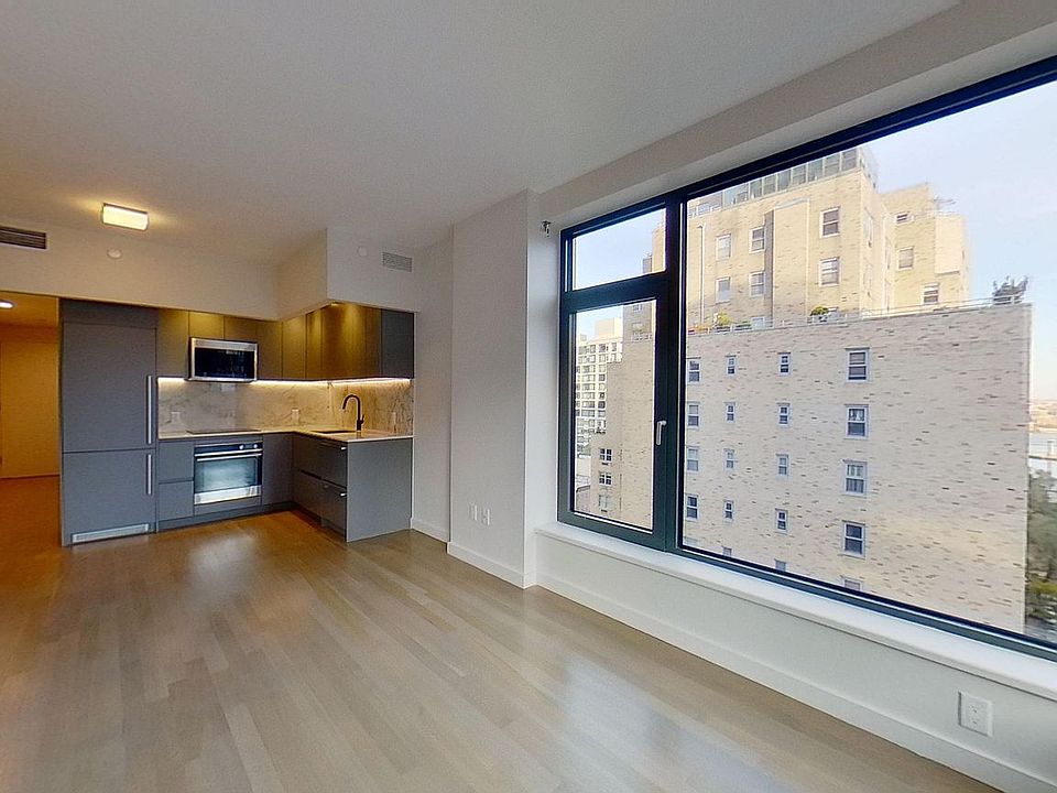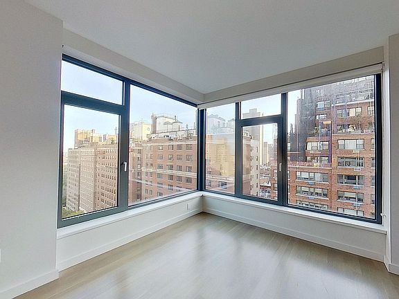 This corner studio is all light and bright with south and east exposure overlooking the park block of East 86th Street. It will be ready for a new resident on April 5. An entryway leads past a sumptuous bath, a washer-dryer closet and into the sunfilled open living area with a smart corner kitchen fully loaded with top of line appliances and luxury finishes. Be inspired by the Fisher Paykel induction cooktop, stove, microwave and fridge. Dekton countertops and solid core Italian cabinetry tie the sleek contemporary look together. Natural oak floors and over-sized floor to ceiling windows provide a feeling of warmth. The bathroom features a custom integrated sink and vanity from Porcelanosa, with elegant tile work and Dornbracht water fixtures. There's a full tub and shower. This is an occupied apartment, and we show by advance appointment. Smoking allowed:No