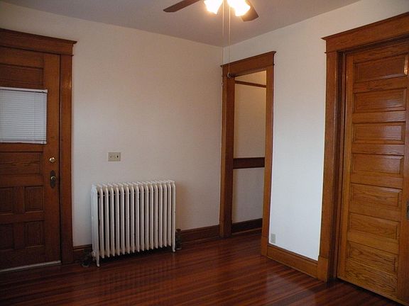 1 bedroom 1 bath all hardwood floors and woodwork and on the second floor. Very close to downtown, Memorial Medical Center, St. Johns Hospital and the Southern Illinois University Medical School and across the street from the Springfield Art Association. We have a coin operated laundromat in the next building. The off street parking lot is very well lit and there is a County Market grocery store, a CVS drug store and the new proposed YWCA is about 1 1/2 blocks away. There are pocket doors between the living room and bedroom and there is a built into the wall ironing board and lots of shelving and cabinets.. We do not accept section 8. We do allow one pet for an additional fee of $20.00 per month plus for dogs there is a pet deposit payment, the amount depending upon the type of dog.This is a non smoking building..The rent is 680.00 and the deposit is $680.00 and that includes the heat, water, garbage and recycling and you pay the electric. Owners pays heat, water,trash. Tenant pays electric