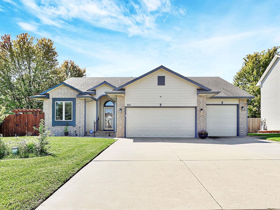 Check out this 4 bedroom, 3 bath home in walking distance to Derby Hills Elementary! This beautiful Ranch style home features a 3-car garage, covered back patio, and a fully fenced backyard. The yard features a well and sprinkler system for easier lawn and landscaping maintenance as well as a huge cost savings for you! Step inside to a large Living room with 10 ft ceilings and a cozy gas fireplace. Desirable split bedroom plan with Master bedroom and bath at the backside of home and a second main floor bedroom with hall bath in the front. You'll love the large Kitchen with lots of counter workspace and cabinets PLUS a pantry! The Kitchen comes fully equipped with a gas range, new stainless refrigerator, dishwasher and microwave. There's a nice-sized eating area that leads to the covered back patio. Just off the kitchen is a bonus Family room that would also make a nice formal dining space or handy office! The convenient main floor laundry with washer/dryer leads the way to the oversized 3-car garage. The third car area has been enclosed and is heated/cooled for the perfect workshop! The full basement features two additional bedrooms, full bath, and large family room with second gas fireplace. There's lots of good unfinished storage in the basement as well! This is a great home in the super nice Ridgepoint Addition in Derby. Schedule your private tour soon before this nice home is SOLD!