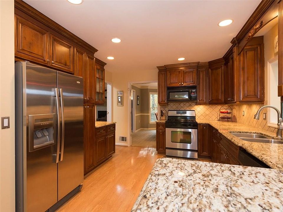 INCREDIBLE LOCATION! SO CLOSE TO DOWNTOWN ROSWELL, EXCEPTIONAL SCHOOL DISTRICTS. BEAUTIFULLY UPDATED CUL DE SAC HOME WITH PARTIALLY FINISHED BSMT.HUGE WOODED LOT IN PICTURESQUE NEIGHBORHOOD.5 BDRMS, 3 FULL BATHS. Bdrm and Full Bath on Main. Custom Kitchen with solid wood cabinets, granite, new backsplash, stainless appliances.Wood cabinets and granite in master bath also. Large Family Room and Dining Rm on main. Bsmt heated/cooled, wired for home office or makes a great rec room.Oversized two car garage with workbench and extra storage. Hurry! Great value!