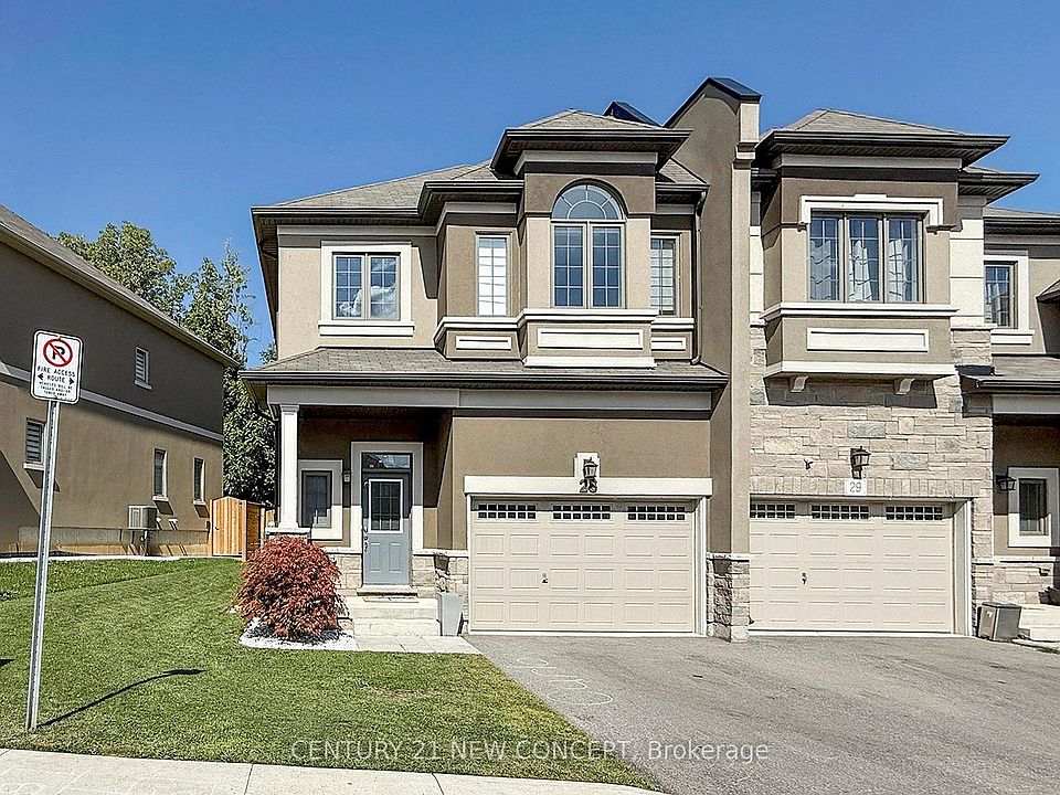 Executive End Unit Townhome Backing Onto Ravine! This premium freehold end-unit townhome offers upscale living with a private backyard oasis overlooking a ravine. The striking stone and stucco exterior opens into a bright, open-concept layout with hardwood and ceramic flooring, high ceilings, pot lights and large windows that flood the home with natural light. The solid oak staircase leads to an upgraded kitchen with granite counters and modern cabinetry, flowing seamlessly into dining and living areas - perfect for entertaining. Upstairs, the primary suite features a walk-in closet and 4-piece ensuite with glass door shower, while two additional large bedrooms and a second-floor laundry add convenience. A finished basement with 3-piece bath extends the living space for recreation, office, or guests. Located in a highly desirable Ancaster community, just minutes from highways, GO transit, schools, parks, golf courses, downtown Ancaster shops, and restaurants. This home combines luxury, comfort, and an unbeatable location - Live Where You're Inspired!!!