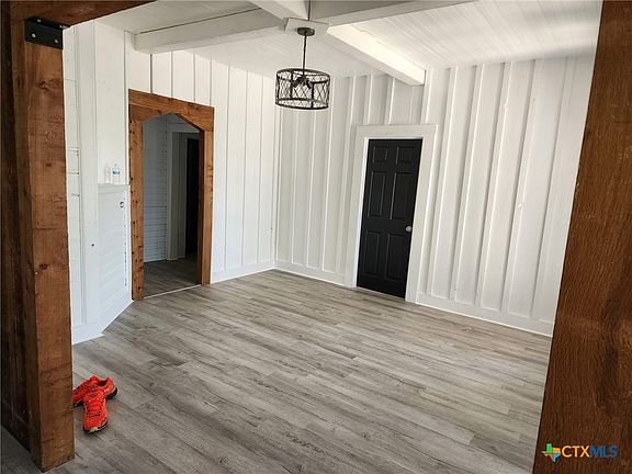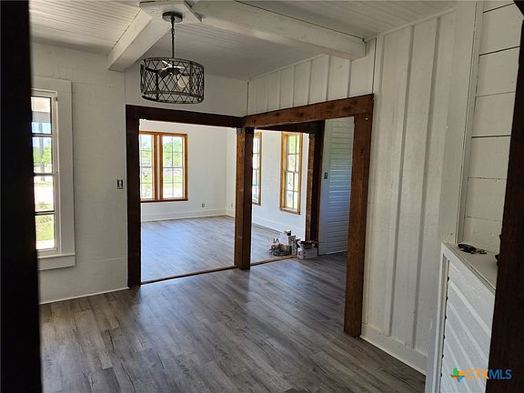 Step inside this inviting 2-bedroom, 1-bath home set on just over 1 acre of beautiful land dotted with mature oaks. The home combines timeless character with fresh updates — featuring tall windows that flood the rooms with natural light, rustic wood beams, and crisp finishes that highlight its unique personality.