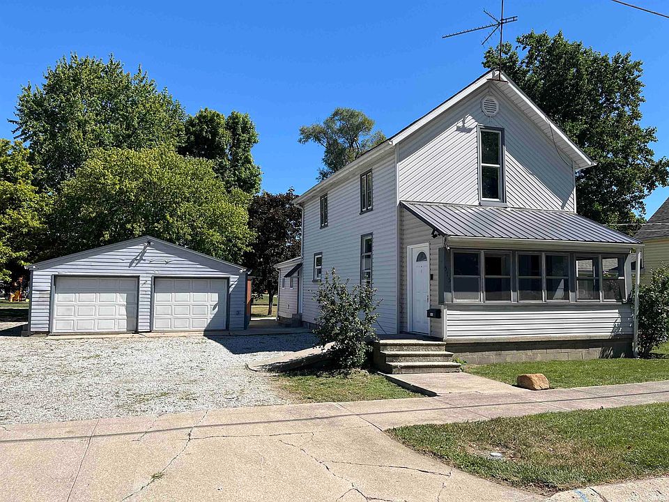 This is a Great economical 2-3 bedroom home with 1 bath and 1324 sq ft living space. Monthly payment almost cheaper than paying rent! Lots of space here with the Living Room, Kitchen, Bedroom and Laundry & Bath on main floor. Upstairs 1-2 bedrooms (used as 2 bedrooms). Enclosed front porch to enjoy all the seasons. Back enclosed porch is laundry area with Water Heater only 1yr old and Furnace 3 yrs old. Plumbing conveniently located to add half bath if wanted. The nice 2 car garage with Metal Roof only 2 yrs old has large gravel driveway and an extra entrance. Small shed and additional leanto to store all your toys! Did I mention Laurie Park is located across the street? A MUST SEE!