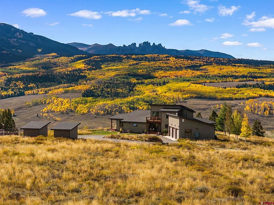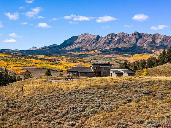 Unmatched Mountain & Valley Views – Private 35-Acre Ranch Retreat - Discover stunning panoramic views of the iconic Castles and the Anthracite Mountain Range from this 35-acre mountain sanctuary in Star Mountain Ranch. This 2,543 SF custom-built home is thoughtfully designed for comfort, light, and scenery, and includes a 936 SF attached 3-car garage. Step inside to an airy, open-concept floor plan featuring wide plank ash wood floors, Caesarstone countertops, vaulted ceilings, and floor-to-ceiling windows in the living room that frame breathtaking alpine vistas. The expansive kitchen is a chef’s dream with abundant workspace, storage, and room to entertain. Enjoy modern comforts including a whole-house water filtration system, radiant in-floor heat with Steffes heat storage, and a pellet stove for cozy mountain evenings. The main-level primary suite is a true retreat, complete with a luxurious soaking tub and direct access to a covered porch with a private hot tub—perfect for soaking under the stars. The main floor also features a private office, laundry room, and half bathroom. Upstairs, you’ll find a second bedroom, full bathroom, and a private balcony with southeast-facing views. A detached shed has been stylishly remodeled into a guest room with WiFi—ideal for visitors or a remote workspace. Star Mountain Ranch has private access to over 300 acres of common area with hunting and fishing rights. Outdoor lovers will value the proximity to National Forest, the West Elk Wilderness, and hiking trails. With low dues and taxes, excellent internet service, and unmatched peace and privacy, this property is a rare opportunity to live, work, and relax in the Colorado high country. Located in a quiet corner of Star Mountain Ranch, just 15 miles from Gunnison and with easy summer access to Crested Butte via Ohio Pass, you’re on top of the world—but still close to vibrant mountain communities.