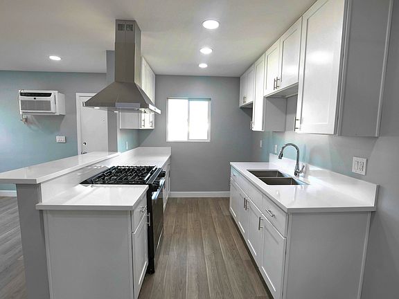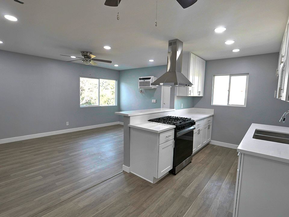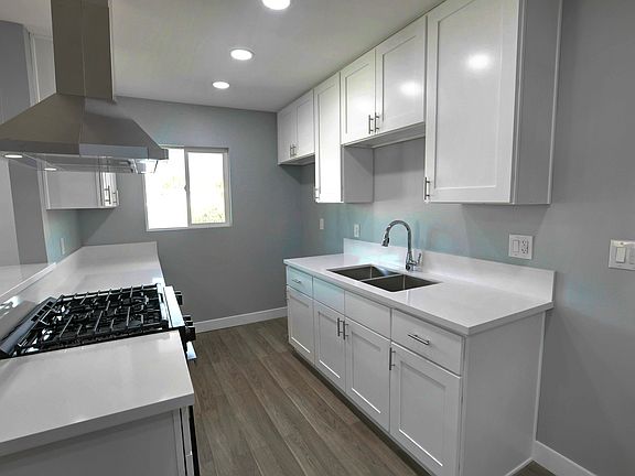 Newly remodeled 1 bedroom 1 bathroom upper floor unit. Complete remodel includes new kitchen with white craftsman cabinets, white quartz counters and new bathroom with new tile, new vanity, new backlit mirror and new fixtures. Also featured are new flooring, new recessed lighting, new bedroom ceiling fans, new interior doors and hardware, new interior trim and double pane windows. This apartment is conveniently located close to the freeway, schools and commercial shopping areas. Unit is available for immediate rental. 12 month rental.